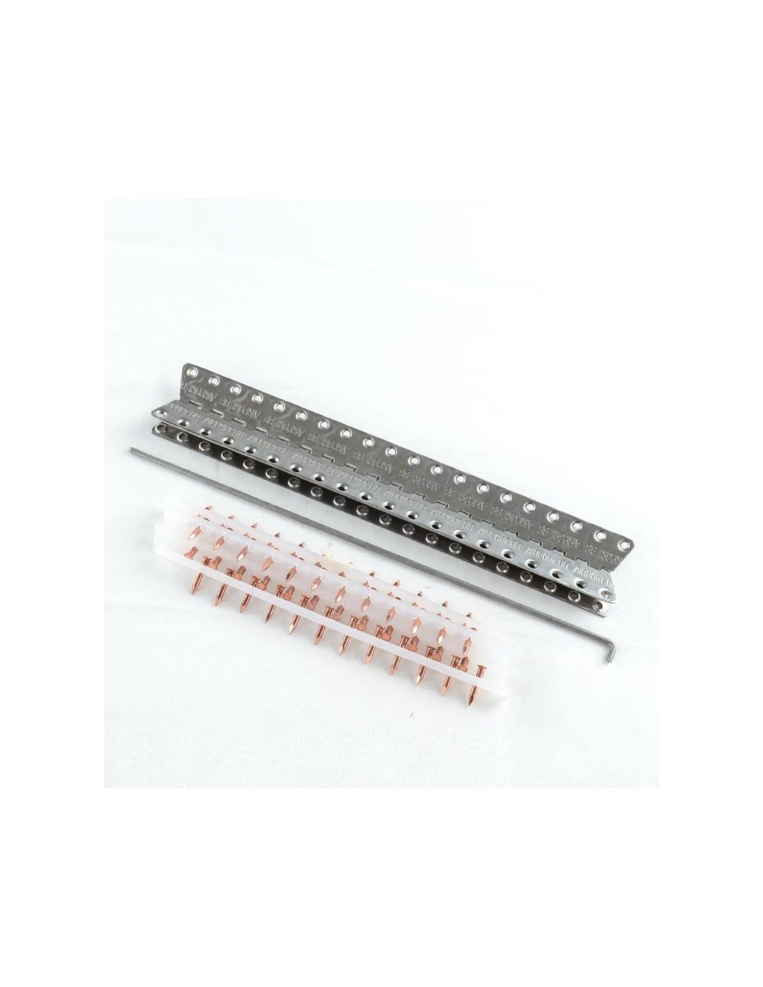 Agrafe fermeture de tapis vendangeuse 250mm en acier inox. Agrafe avec clous en acier et cuivre, une fixation plus fiable et pratique que le système original. Axe en acier inoxydable de 3mm d’épaisseur. Fabriquer par MLT.